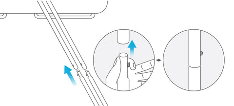 2. Connect the bathtub legs to the bathtub frame by pushing in the buttons and inserting the leg into the frame until the buttons pop out. Ensure the buttons pop out of the frame and gently pull on the leg to confirm it is locked in place. Repeat for other leg.